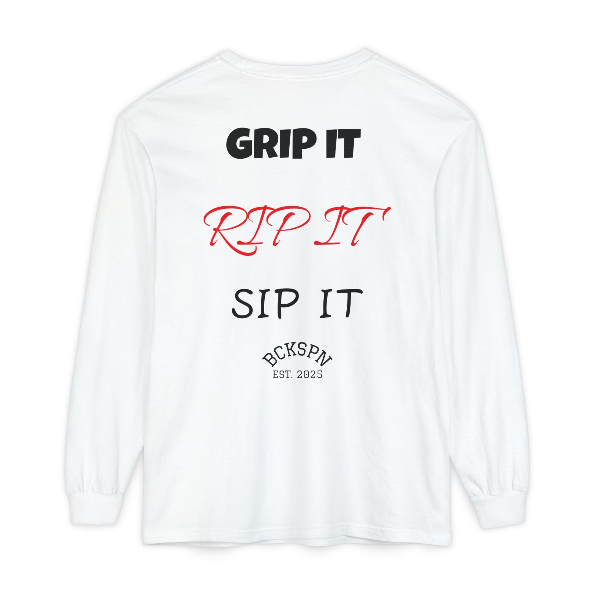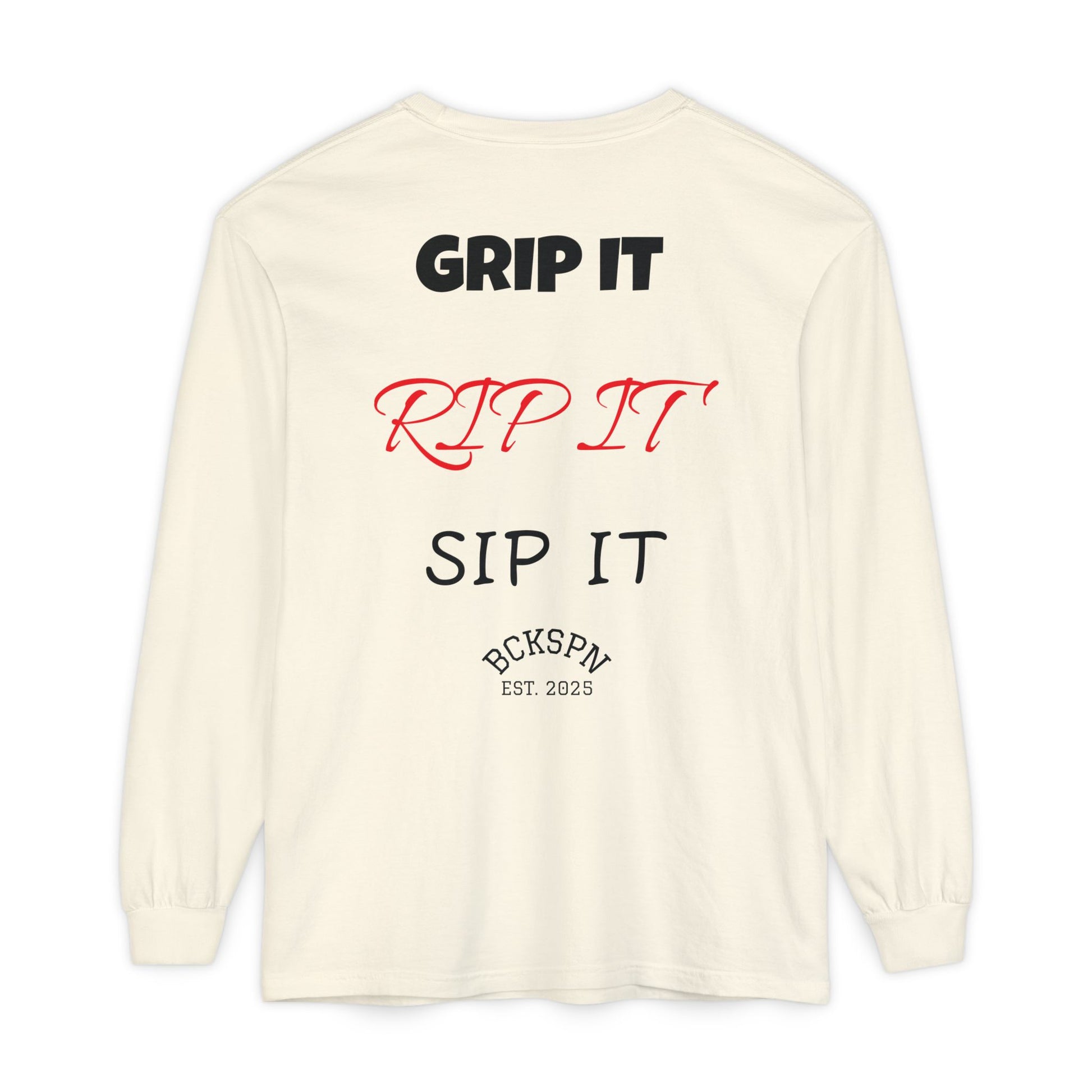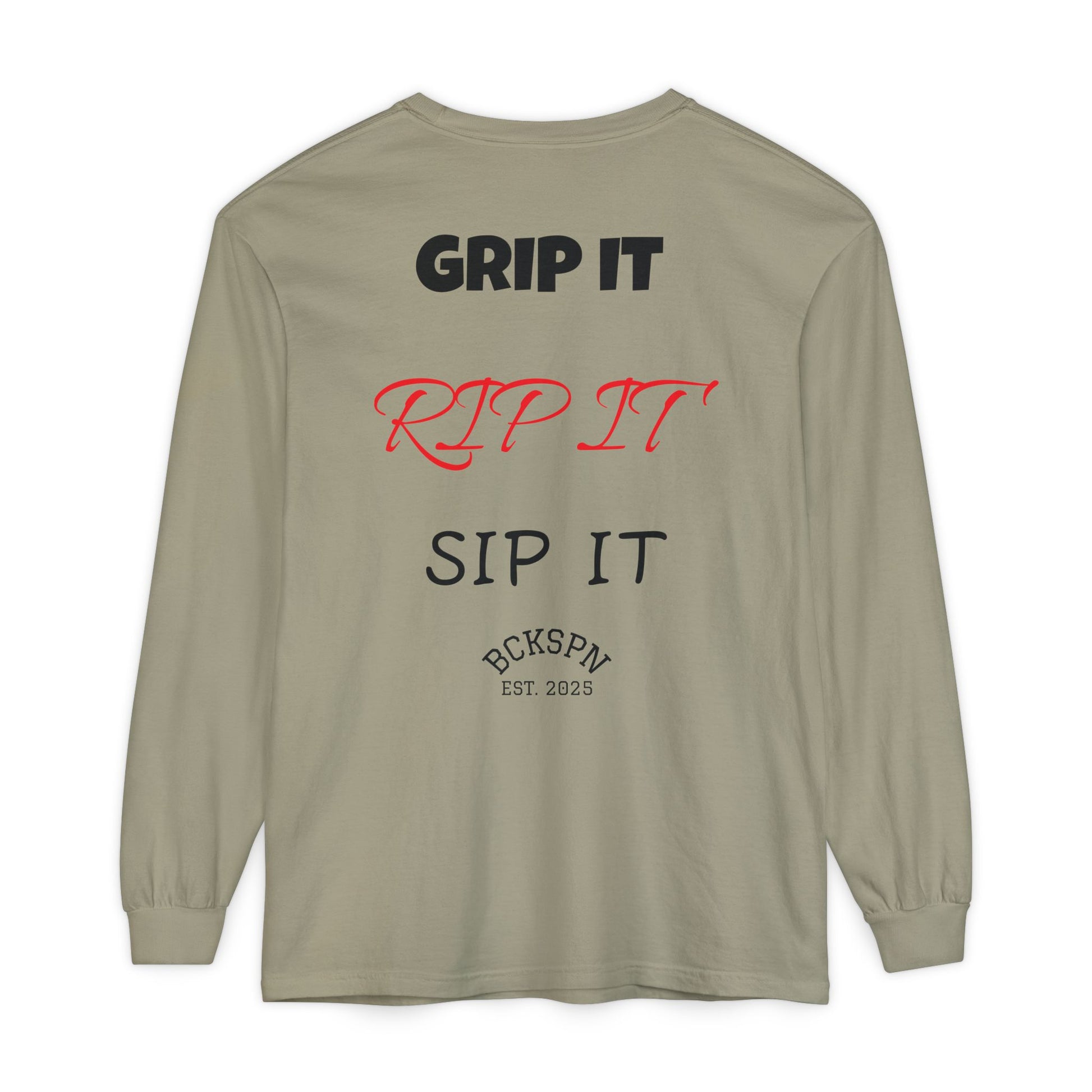 Unisex Long Sleeve T-Shirt - 'Grip It, Rip It, Sip It' - Casual Wear, Gift Idea, Everyday Use, Comfortable Fashion